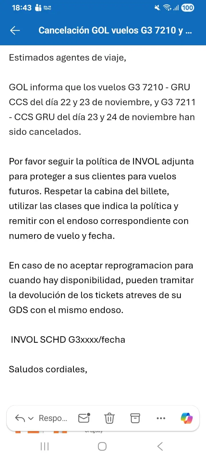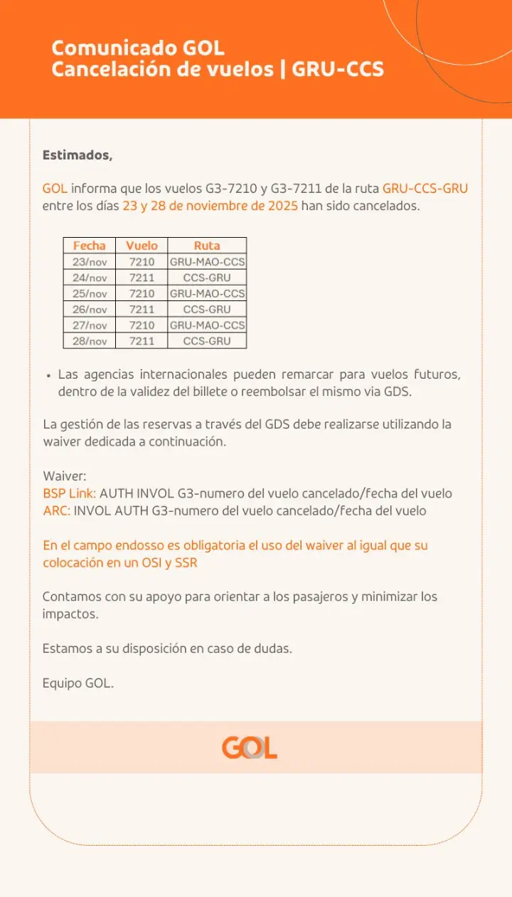 La aerolínea puso a disposición de los pasajeros números de contacto y recomienda canalizar información adicional a través de agencias de viaje autorizadas.
