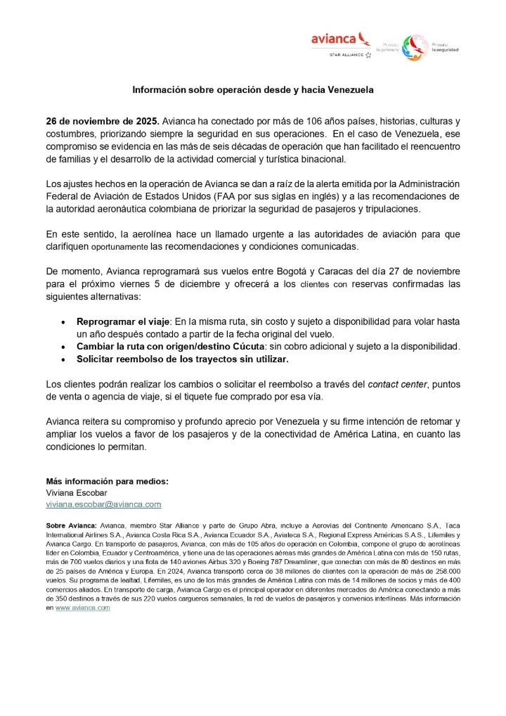 La suspensión temporal de vuelos desde y hacia Venezuela responde a un criterio de seguridad aérea internacional. Mientras las autoridades trabajan en aclarar y mitigar los riesgos señalados, las aerolíneas han activado políticas de protección al pasajero para minimizar el impacto en sus planes de viaje.